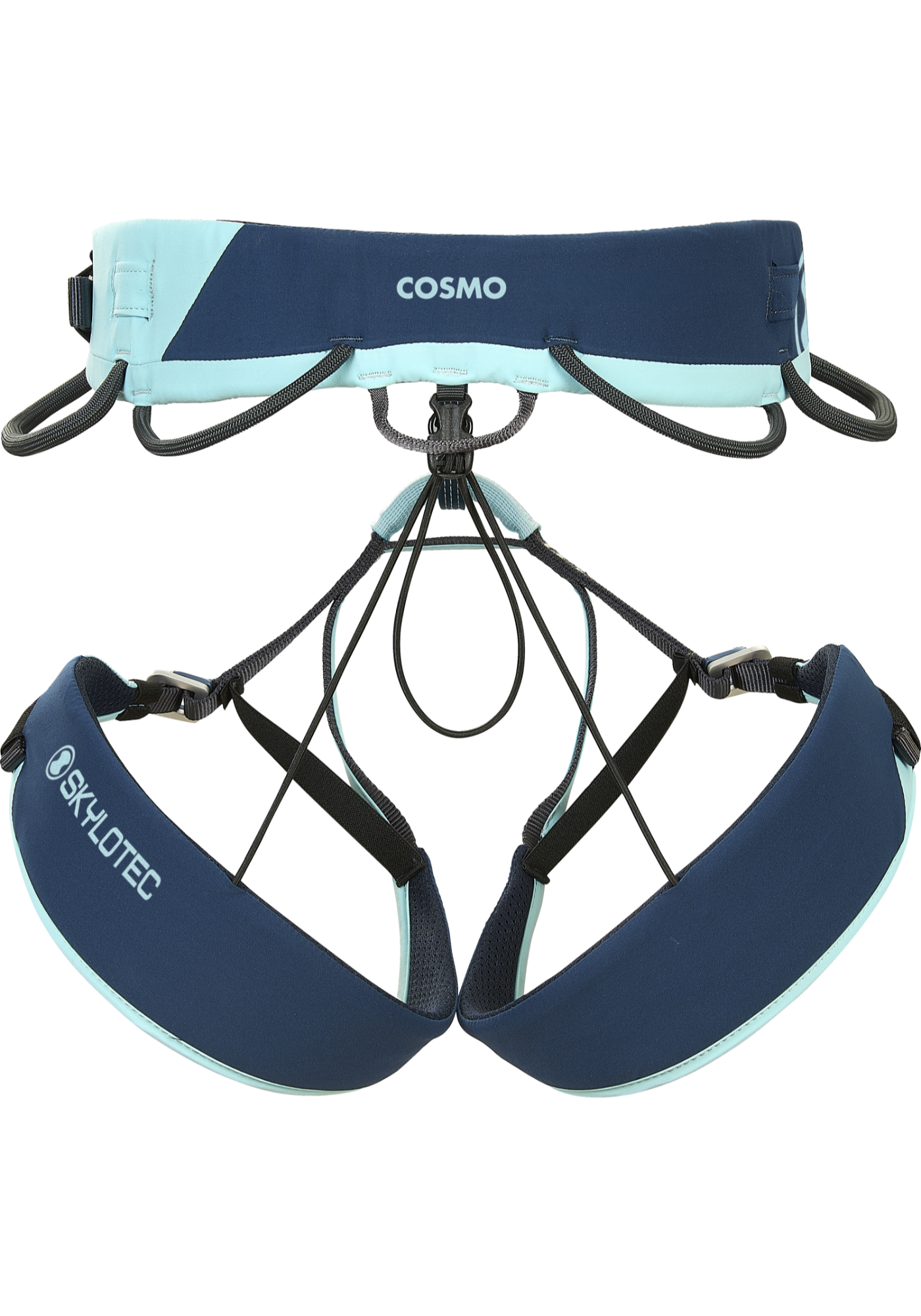 - geometria e dimensione dei cosciali che permettono un’eccellente ripartizione dei carichi durante le attese in sosta e le calate in corda doppia;