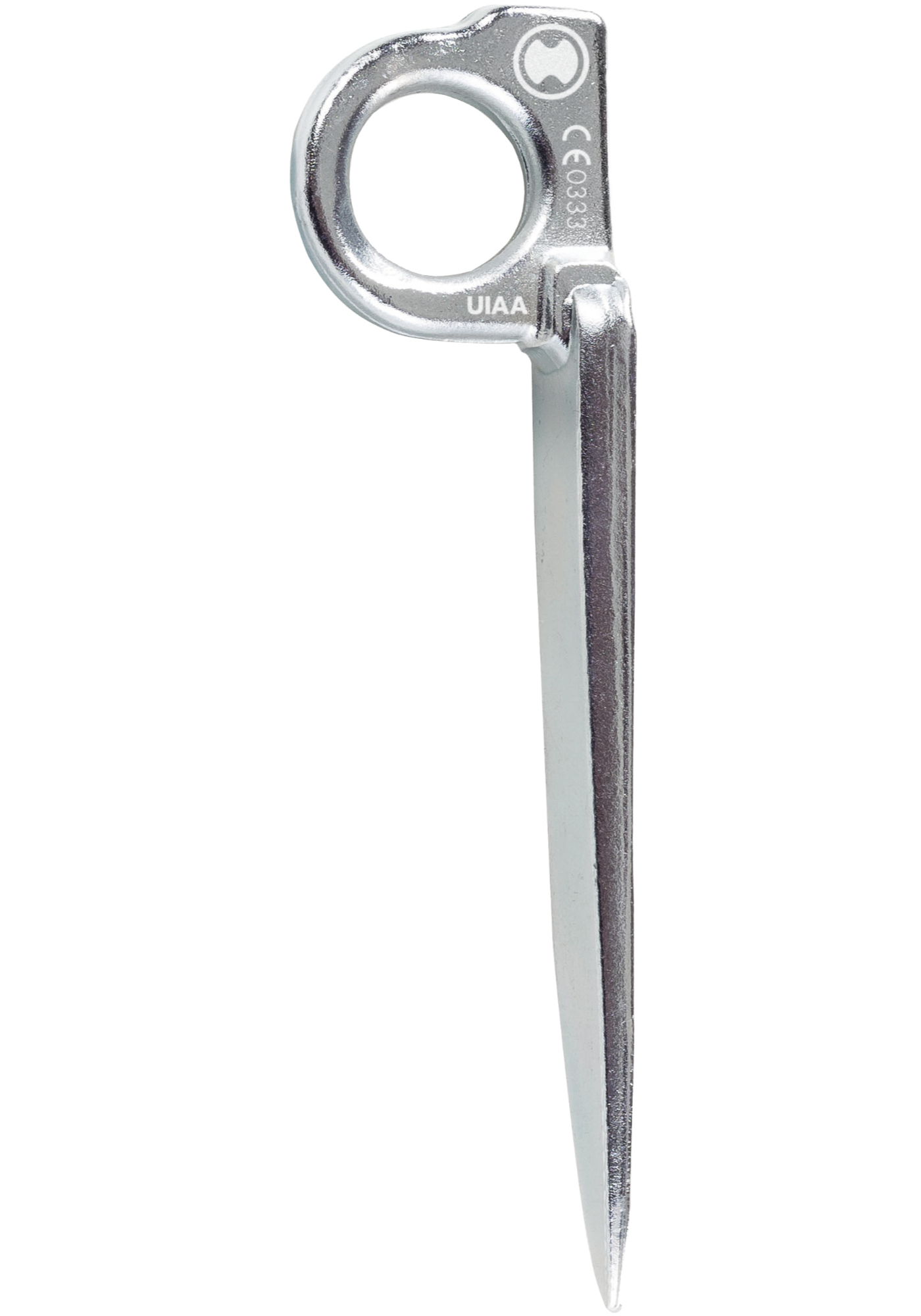 Chiodo in acciaio non temprato con punta a V per l’utilizzo su roccia tenera in fessure verticali.