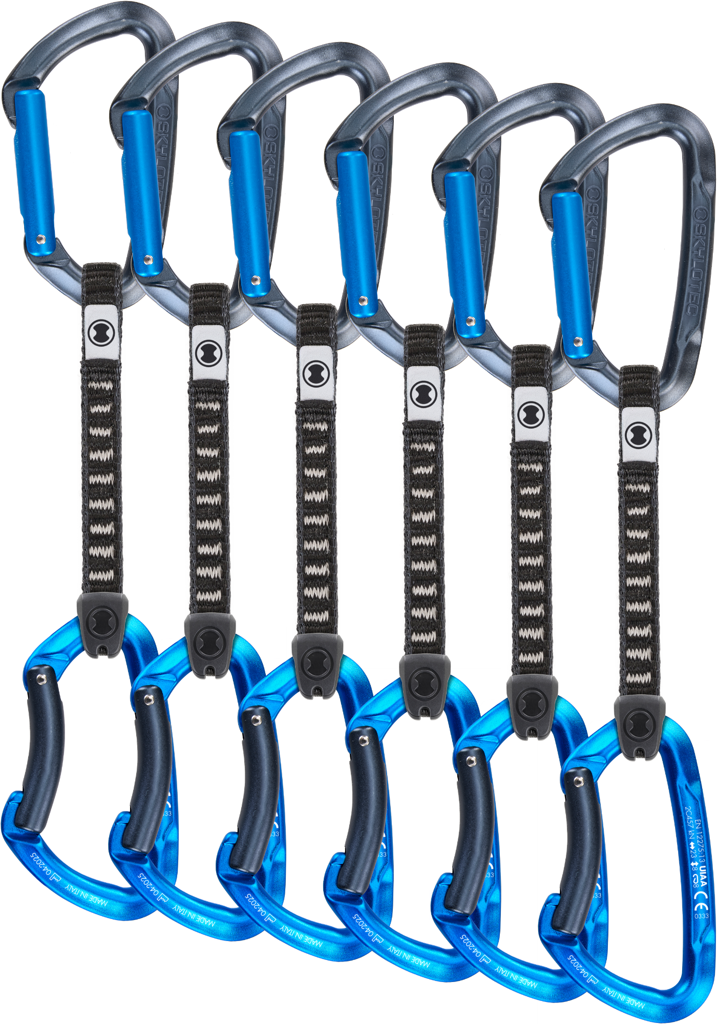 - moschettoni con forma classica e chiusura catch-free;