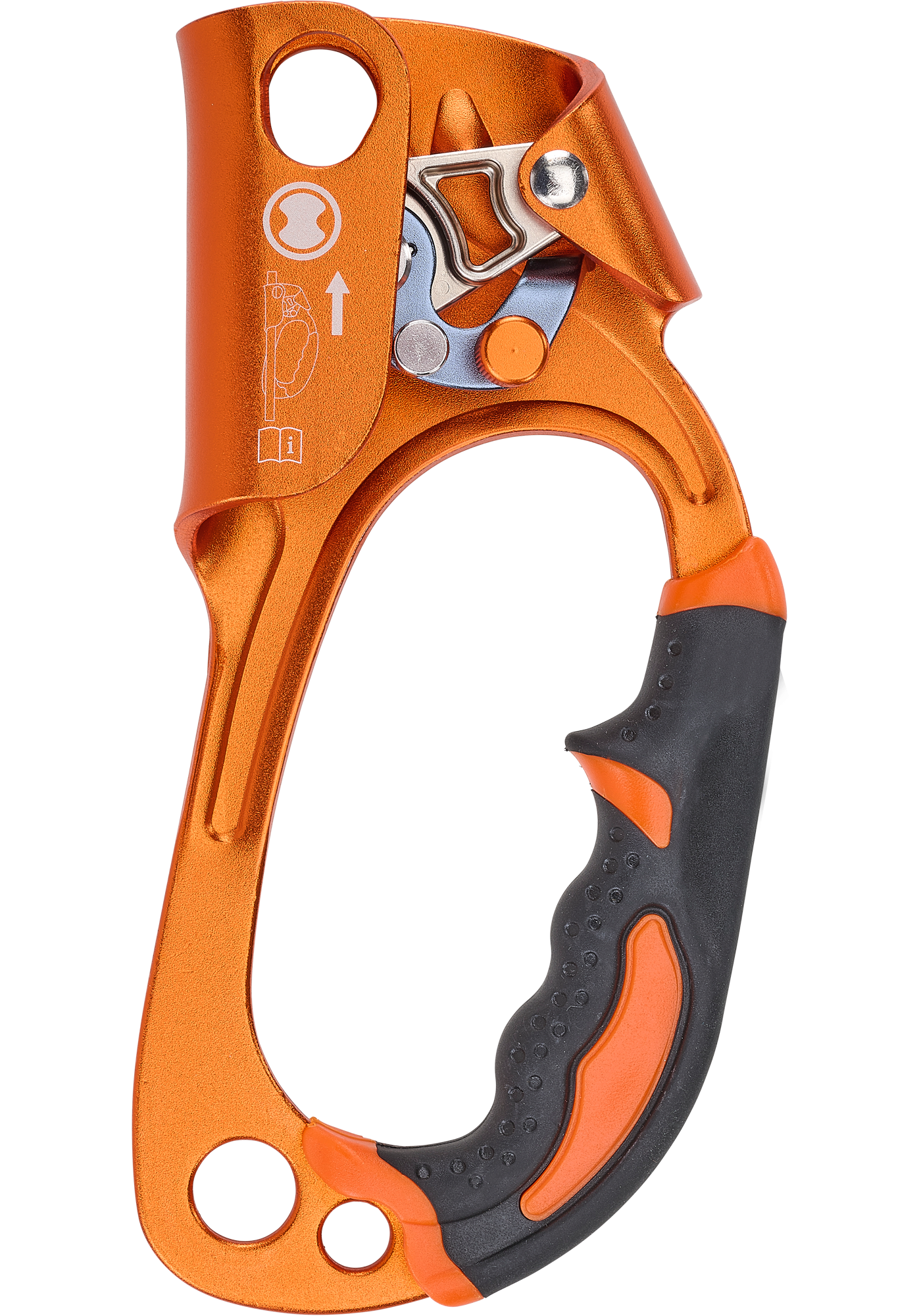 Maniglia bloccante destra in lega leggera con impugnatura ergonomica in gomma. Ideale per la risalita su corda, la costruzione di paranchi e il sollevamento di materiale.