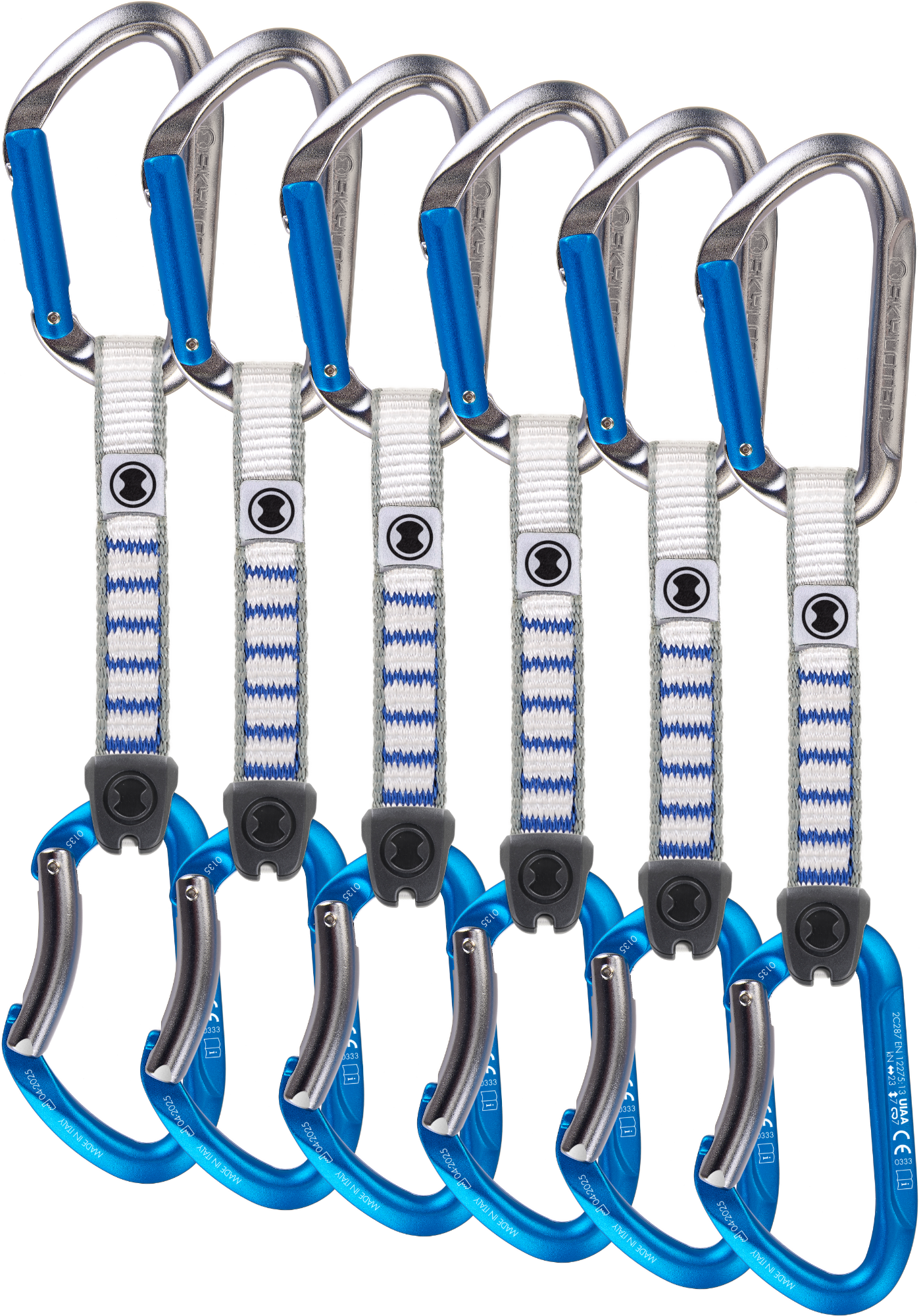 Confezione da 6 rinvii di dimensioni compatte, leggeri e polivalenti, ideali per alpinismo e arrampicata sportiva.