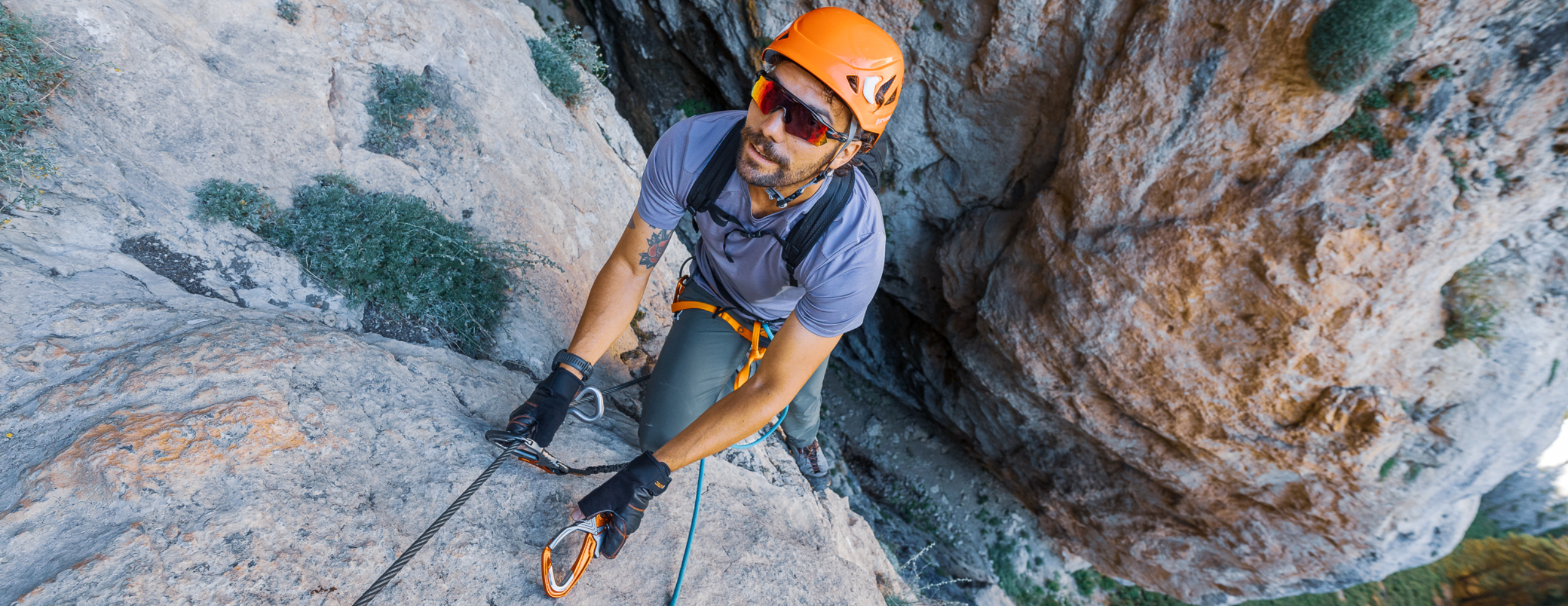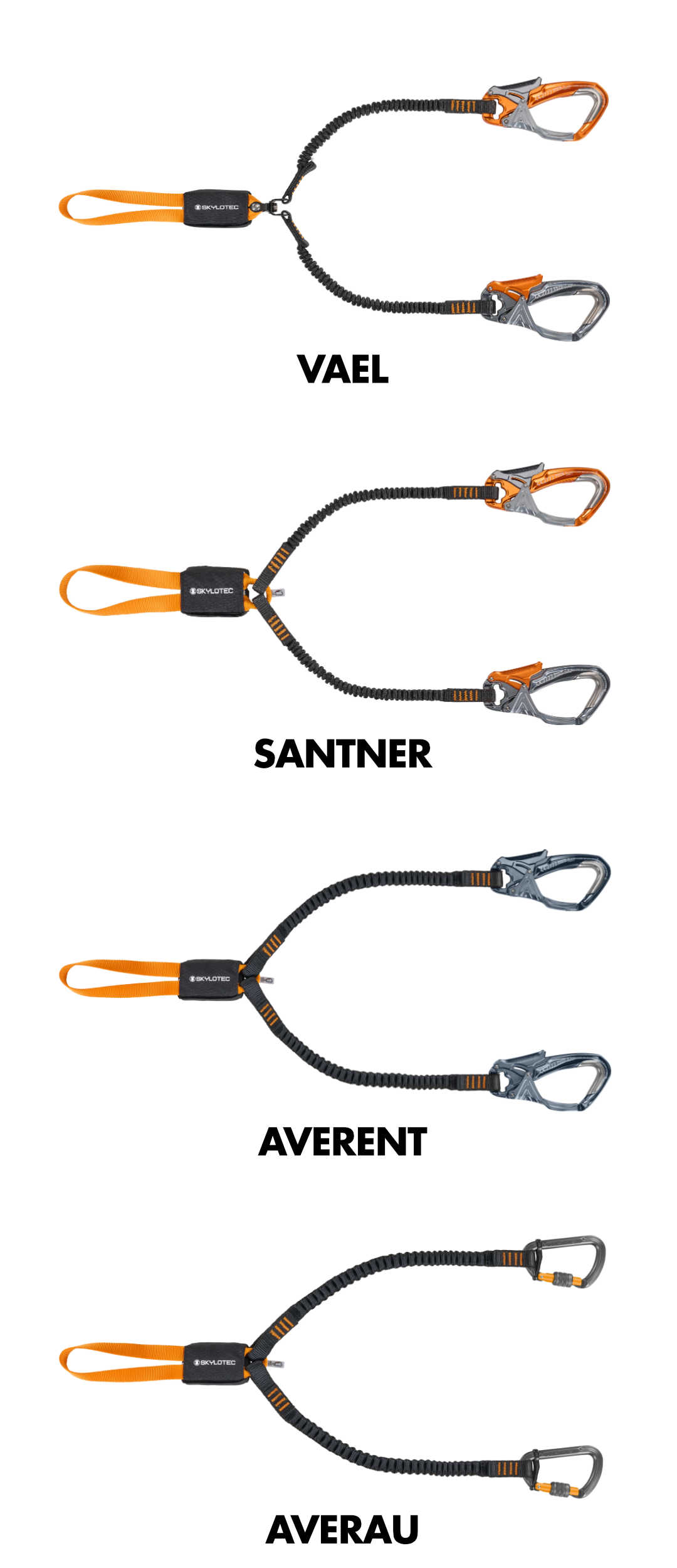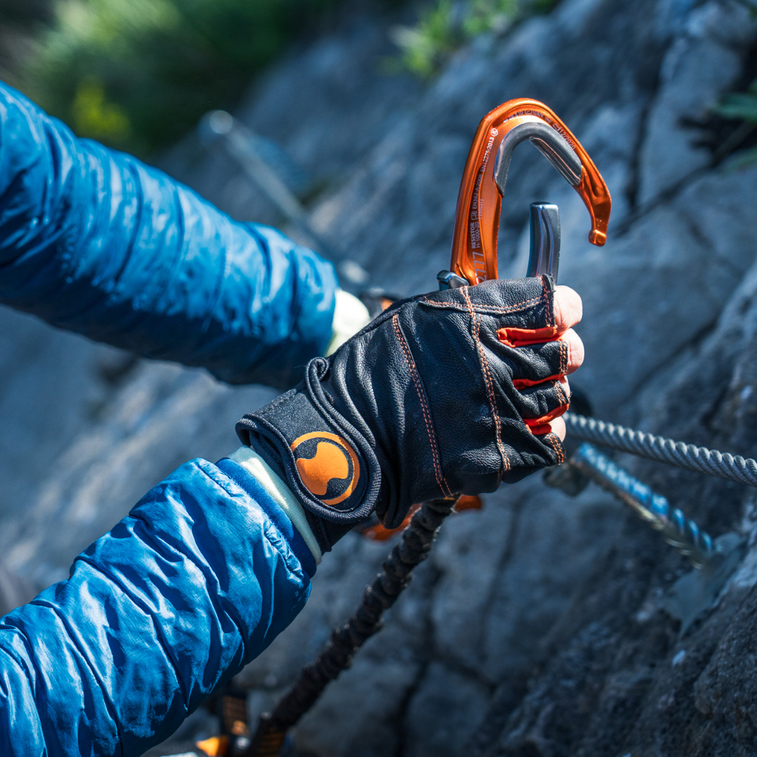 Moschettoni a doppia leva dotati di guscio antiusura in acciaio e ampia apertura.